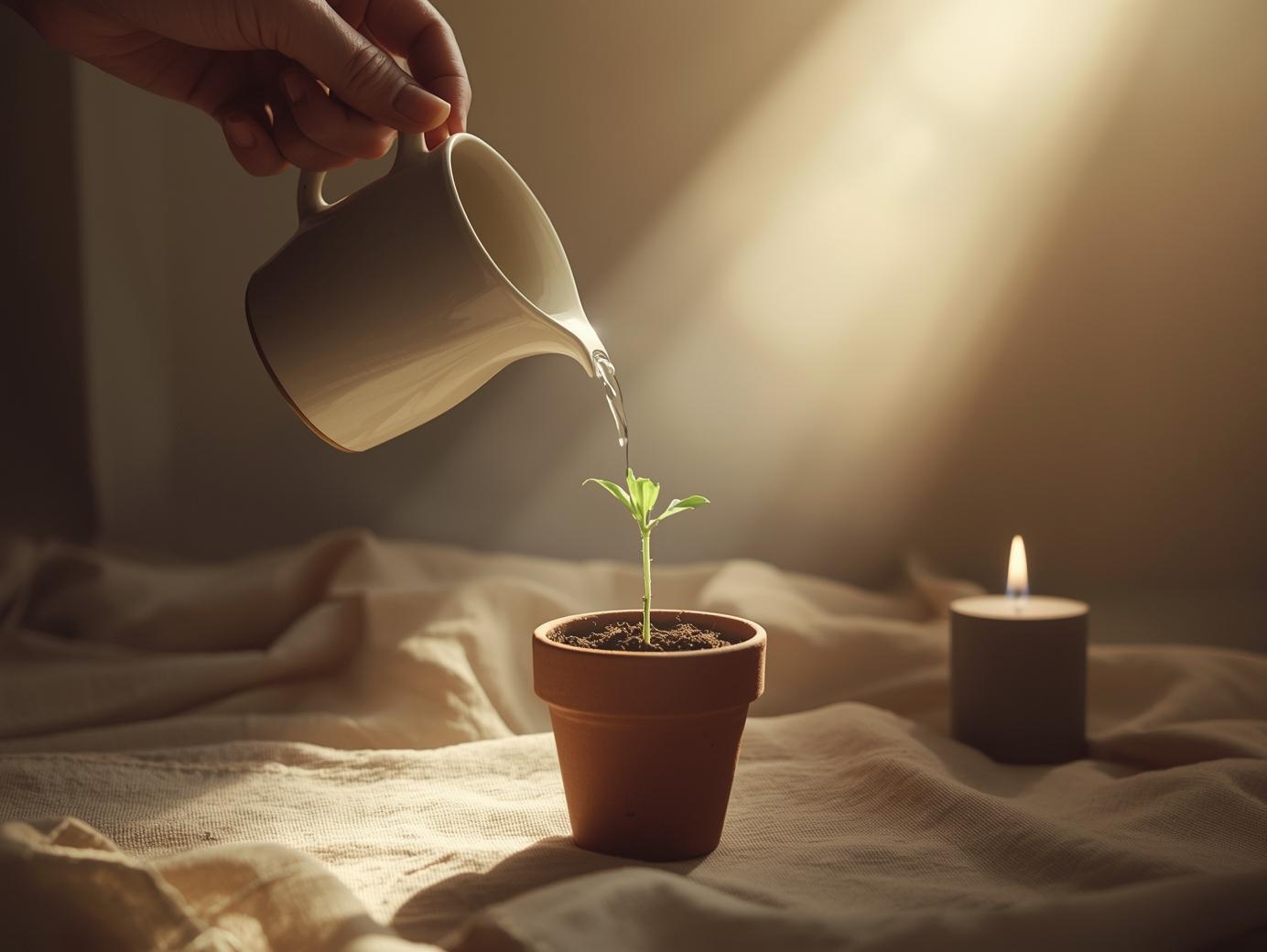 Cada persona puede acercarse y verter un poco de agua sobre la planta, mientras dice en voz baja algo que desea cuidar en este Adviento (una persona, una relación, un aspecto interior).